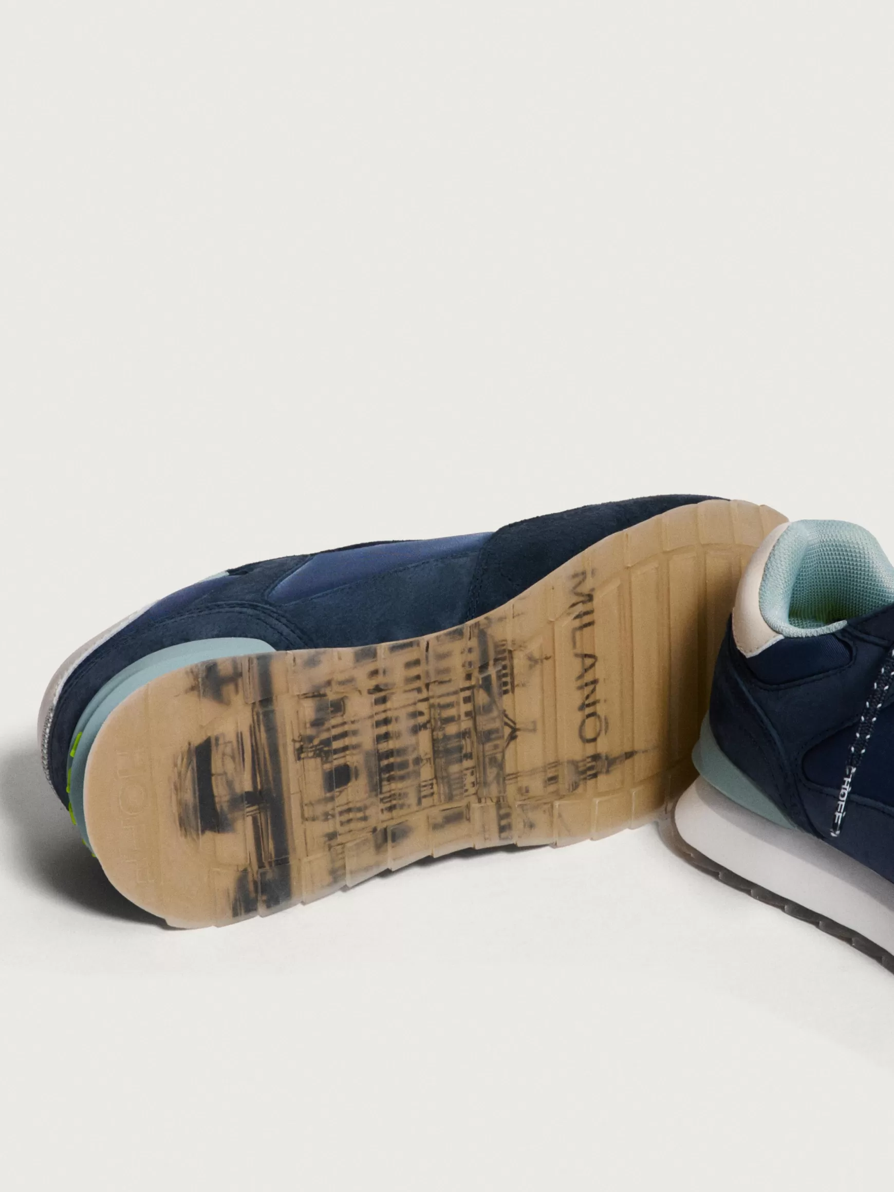 Voici l’une de nos baskets emblématiques, inspirées par Milan, la capitale de la mode. Avec des tons bleu foncé, des détails en caoutchouc gris et un élégant contrefort en cuir, elles sont un incontournable stylé. Avec une combinaison de cuir certifié et de nylon, elles offrent durabilité et polyvalence. La semelle intérieure en Memory Foam® procure un confort exceptionnel, tandis que la semelle résistante garantit une démarche sûre. Portez-les avec une jupe plissée et un chemisier en soie pour un look élégant et sophistiqué.