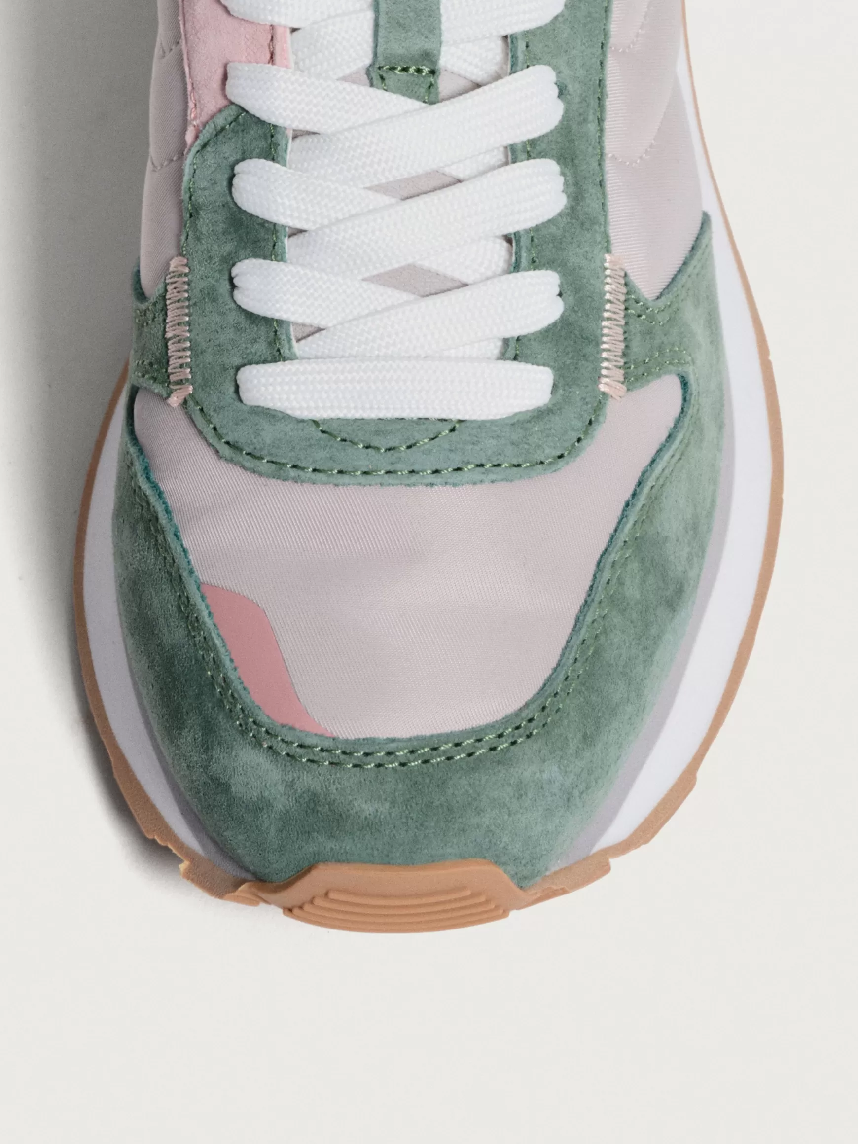 Inspirées par les sportifs, créées pour votre quotidien. On adore ces baskets avec leur mélange équilibré de cuir et de textile, offrant la résistance d’une chaussure de sport rétro à l’esthétique de la mode contemporaine. La semelle en caoutchouc robuste est conçue pour le quotidien. jour, assurant un confort à chaque pas. Les tons roses et les détails verts ajoutent du caractère et de la fraîcheur à la silhouette. Associez-le à un bomber pour un look athlétique-chic, ou à un jean et une chemise pour une touche plus urbaine et décontractée.
